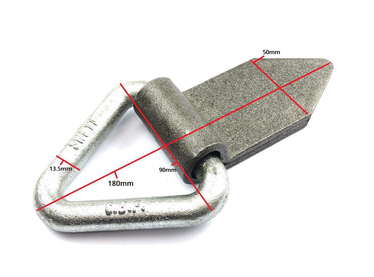 Triangle Weld On Lashing Tie Ring. Weld-on Lashing Hook to be welded on to the body of trucks, trailers, pick-ups and other commercial vehicles. Perfect to strap heavy machinery to.